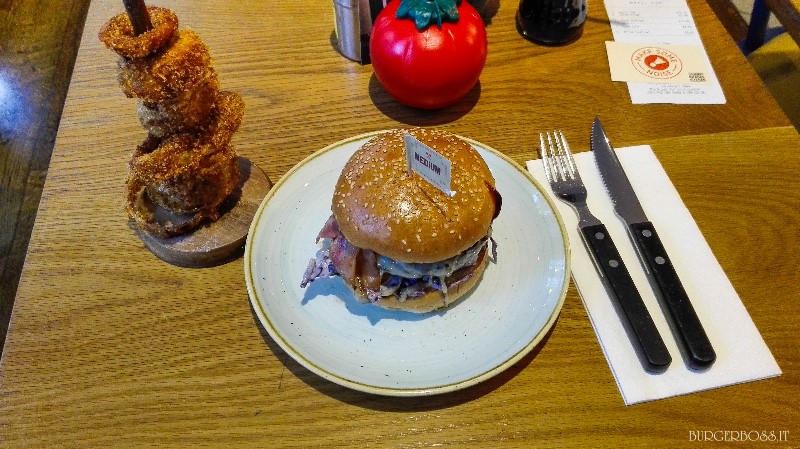 Veniamo, adesso, al pezzo forte: l’hamburger è servito in un piatto e ci sono anche le posate che, però, non mi sono minimamente sognato di usare: un hamburger va preso con le mani e addentato con soddisfazione!