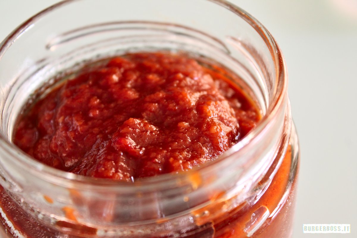 Si tratta di una salsa volutamente corposa e rustica, dal retrogusto amarognolo ma sostanzialmente con un sapore tendente al dolce che va a bilanciare perfettamente la sapidità e il piccante degli altri ingredienti che compongono l’hamburger per il quale è stata creata.